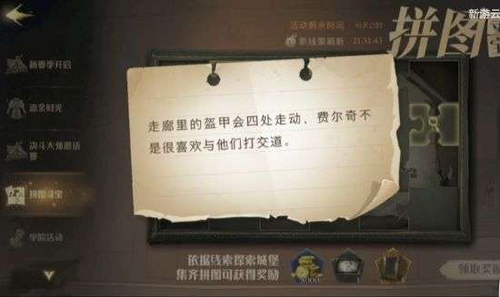 哈利波特走廊里的盔甲会四处走动,费尔奇不是很喜欢与他们打交道,这个是11.6今日最新的一个拼图,在什么地方可以找到对应的线索,下面就来介绍下哈利波特走廊里的盔甲会四处走动线索在哪。