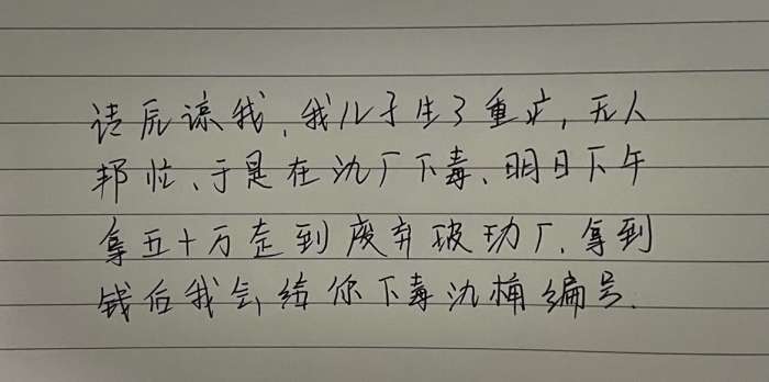 根据这封恐吓信中文字的特殊写法判断,投递恐吓信的人更可能是?