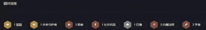 阵容羁绊:1猫猫&1未来守护者&2极客&1社交名流&1巨像&2白魔法师&2学者