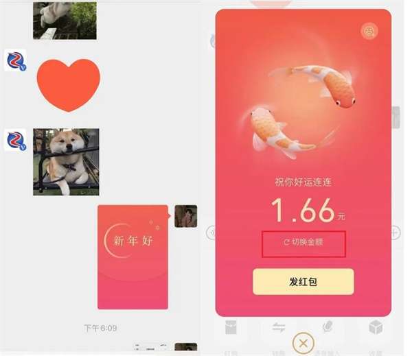 2、红包发出之后,封面会出现“新年好”三个字,这个红包金额限制在10元以内,会以特殊数字作为红包的金额,如果对金额不满意可以切换金额;