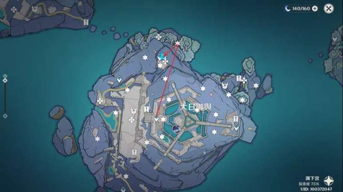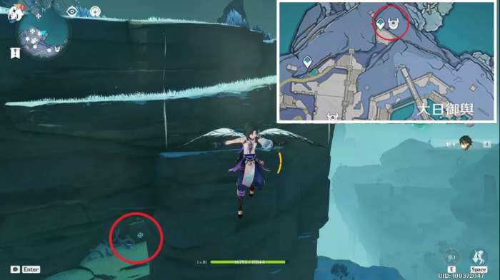 5、在白天模式下,从大日御舆最东边的传送点飞过来