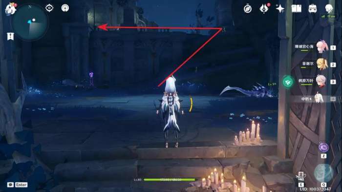 6、在黑夜模式来到此处,可以看到一个水使徒
