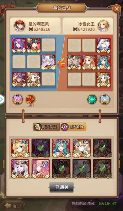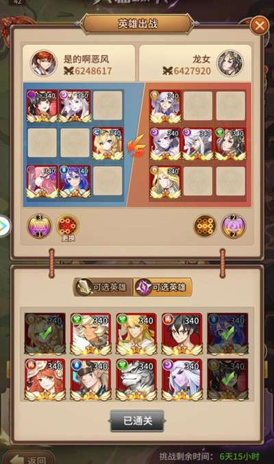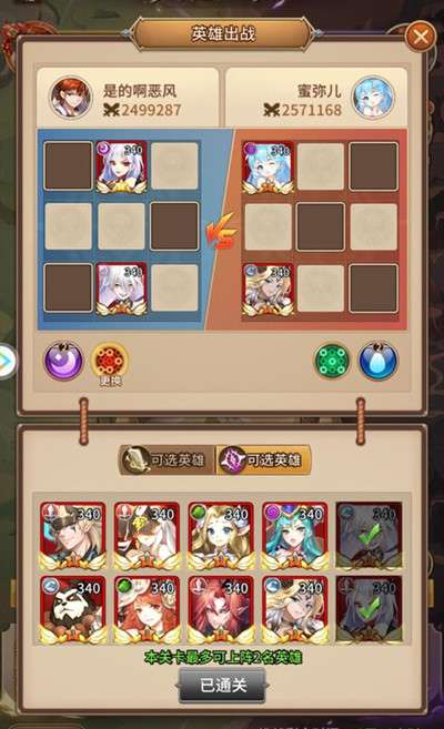 (2) 冒险者发起关卡挑战后只可在系统预设的【英雄库】挑选英雄搭配上阵,两大阵营的可选英雄库会有所区别,展现冒险者和队友策略搭配的时候到了!