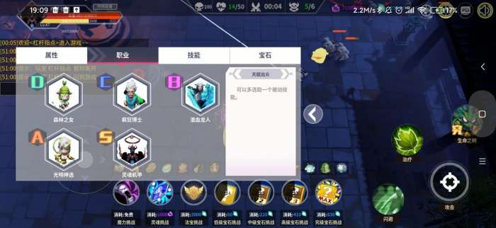 技能是腐蚀魔阵,生命之树,强力施法。职业D小鹿,C博士,B蓝龙,A光明,S机甲,宝石五紫色。