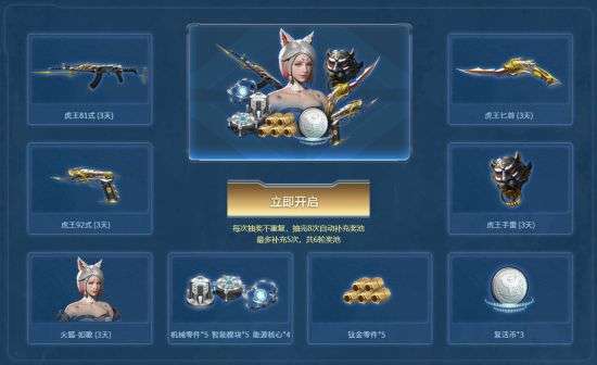 开启财宝箱,你将有机会得到虎王系列武器道具、火狐-如歌等不重复奖励,最多可抽取6轮奖池,让你次次都有惊喜感!