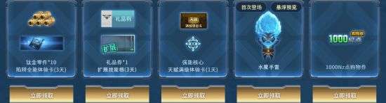 游戏3天,领取时间掌控者(5天),星光炮(5天),陷阱全能体验卡(3天);