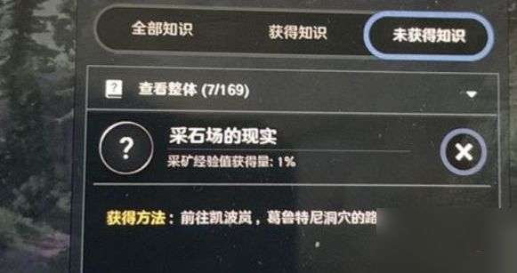 2、采石场知识在获取后还可以提升1%的采矿经验值,此外地图内还有很多的知识,玩家可以在探索过程中多跟附近的角色以及道具互动收集;