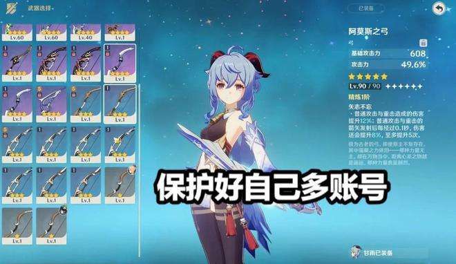 看到这里,我就想随便说几句,首先,练一个原神账号不容易,自己买号与自己练号完全是两回事,而且原神中没有两个完全相同的账号,看这位玩家仓库中的五星武器不多,应该是微氪月卡/大月卡玩家,四星武器也不多,看样子玩原神的时间还不够久,不然也不会总想找主播帮忙看号,就像我前面说的,不是每个原神玩家的素质都很好,不管是买号还是看号,你都要做好被融号的准备。
