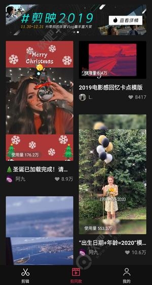 3、在剪同款内我们可以看到很多同款拍摄视频模板,找到“出生日期+年龄=2020”模板