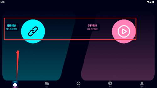 2、首页提供链接播放与手机视频两种模式,支持在线或本地内容。