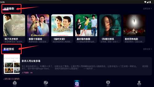 4、首页还设有动漫番剧、影视赏析等板块,供用户选择观看。