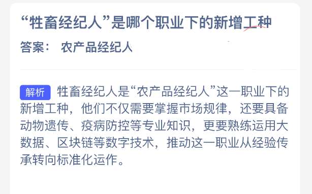 以上就是“牲畜经纪人”是哪个职业下的新增工种?支付宝蚂蚁新村最新答案2025年12月24日,更多精彩内容,请点击关注pk游戏网更新!
