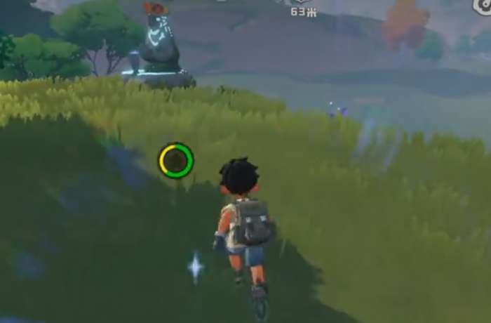 在这个坡地上,可以看到一座造型古朴的石像。世界栗鼠的出现与这座石像密切相关。此时,需要准备一只水系宠物,如水蓝蓝,对石像进行激活操作。