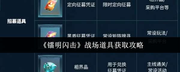 以上就是pk游戏网小编整理带来的镭明闪击战场道具获取攻略,更多相关游戏攻略,请关注pk游戏网!