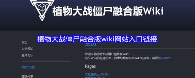 植物大战僵尸融合版游戏上线wiki网站地址,玩家可以通过这里了解到游戏的各种攻略,以及植物图鉴,游戏遇到的问题也可以在这个查找解决办法很方便,不知道地址的,可以来看看植物大战僵尸融合版wiki网站入口链接,植物大战僵尸融合版wiki网站地址一览!