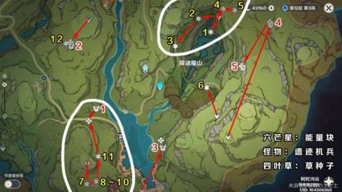 1、先按照白色圆圈指示的路线前进,其余能量块的顺序无需遵守。