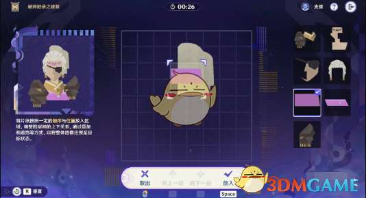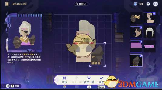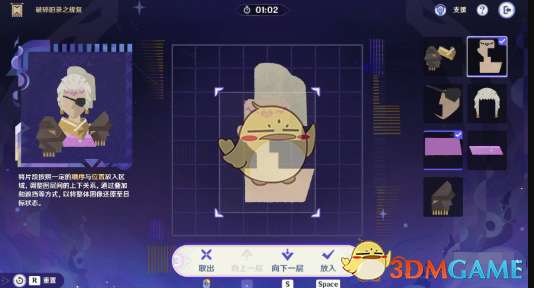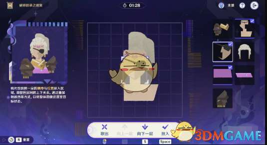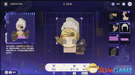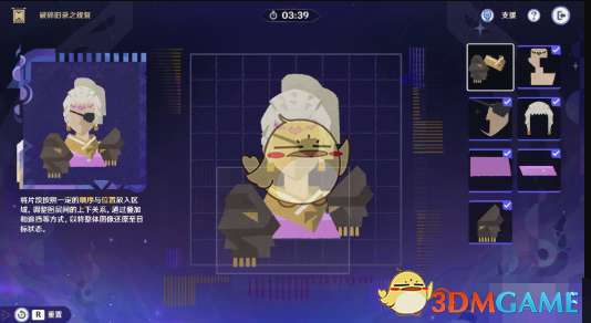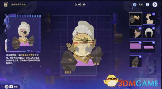 7、最后一步只需要将第一行第一列的碎片叠放在第6步的碎片上即可完成修复,顺利通关。