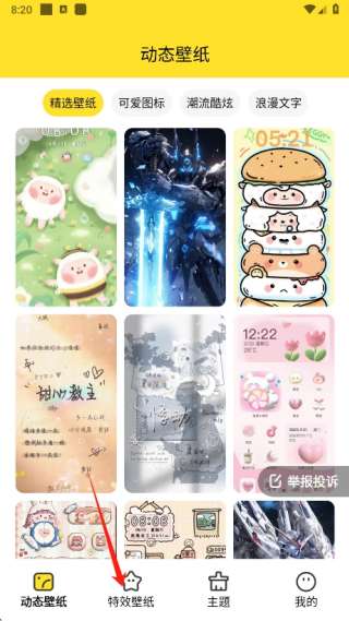 1、打开APP后选择底部的“特效壁纸”栏目。