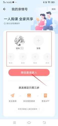 2、这时候我们就能邀请关联好友了,点击下方的“微信邀请家人”;