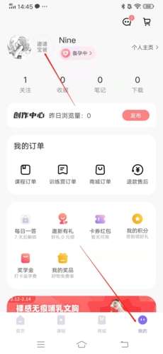 1、进入丁香妈妈app后,首先点击右下方“我的”,再点击上方的“头像”;