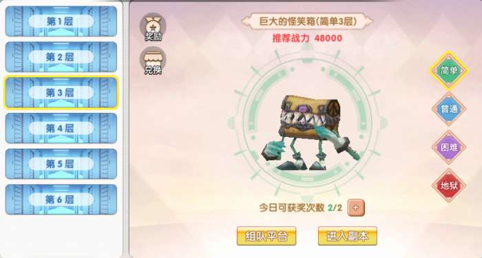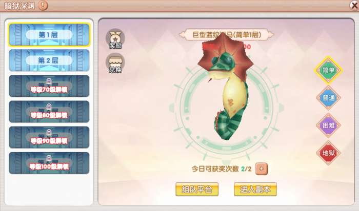 1、暗狱深渊设有若干层,每层共有4个难度:简单、普通、困难、地狱。