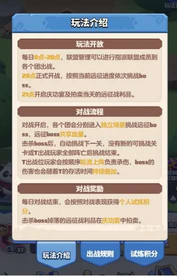 ③联盟试炼开放,且在击杀boss之后会开启庆功宴,联盟的成员可以拍卖心仪的装备以及道具。