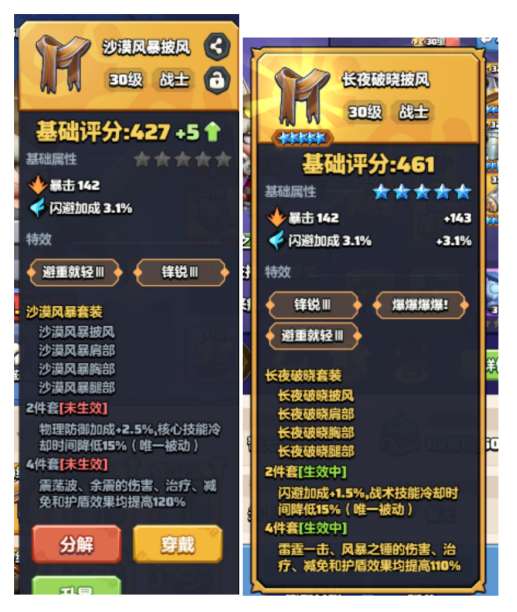 有红色两星的同名字部位装备可替代五星橙色装备。