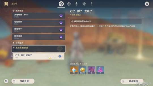 先来到下图叹号位置触发任务-石头,椰子,龙贩子。