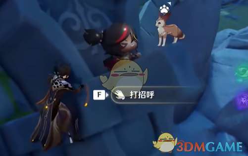 2、从左侧的石头位置爬上去,触发提示,点击打招呼即可找到松鼠。