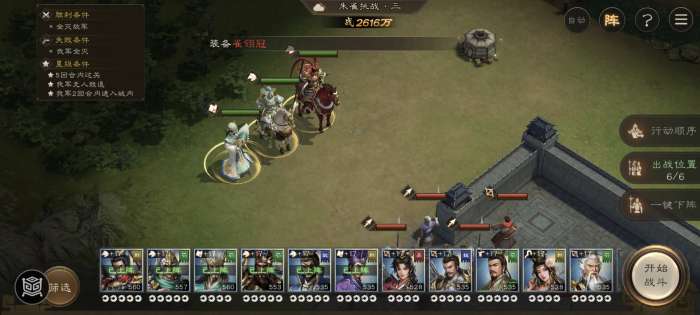 新三国志曹操传朱雀挑战三怎么过?朱雀挑战三是四象挑战之朱雀柳,本关难度较低,正常打就行。首先利用吹风技能,吕布清除路径障碍,赵云直接进城触发条件。其余角色在下路自由输出,通常第二回合即可顺利达成胜利条件。