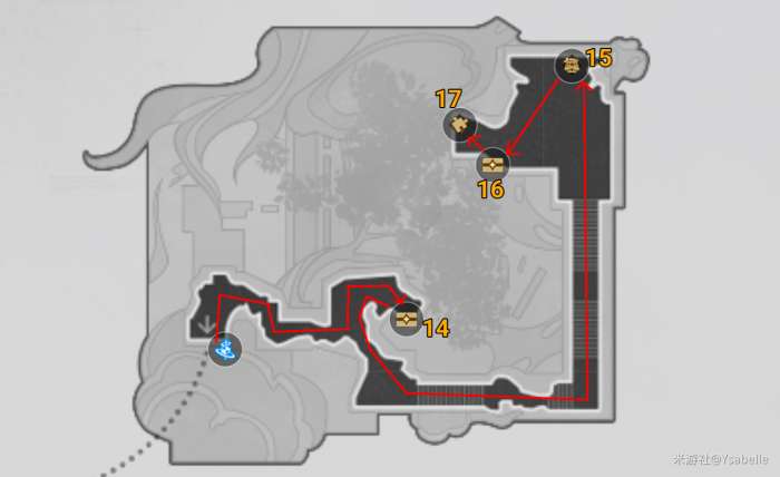 第三块区域,14到17号战利品路线: