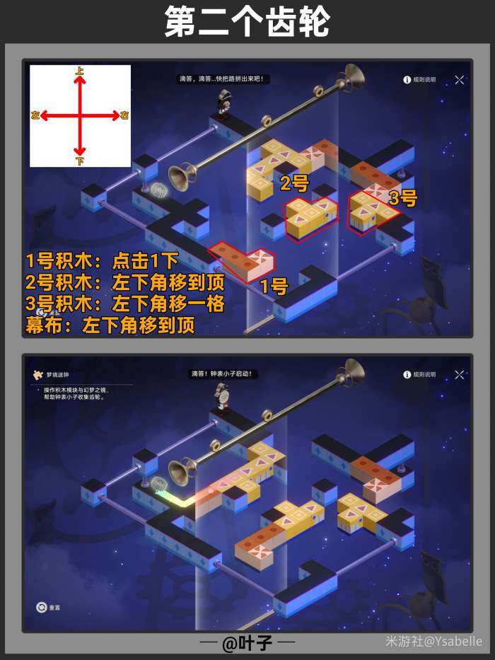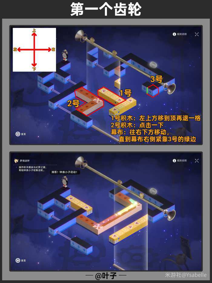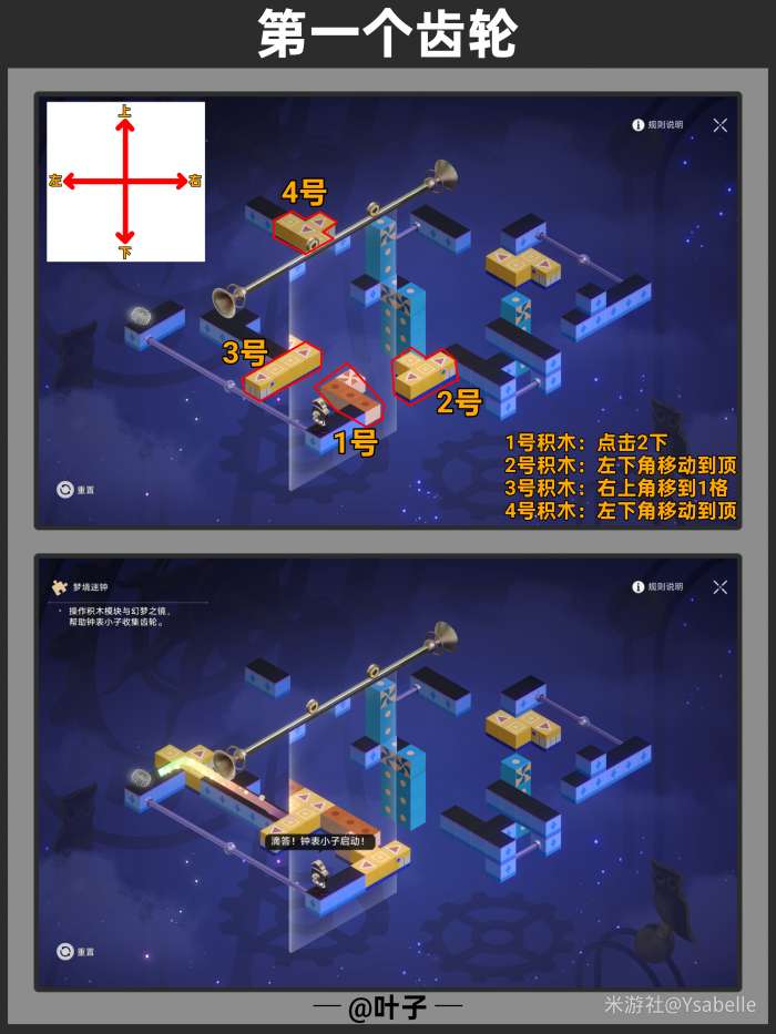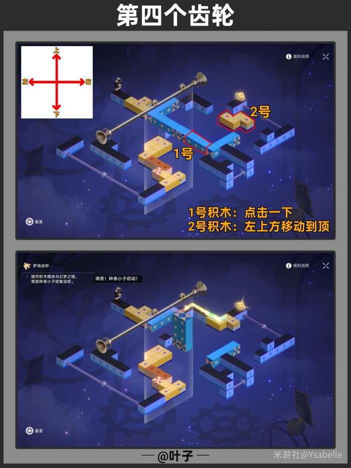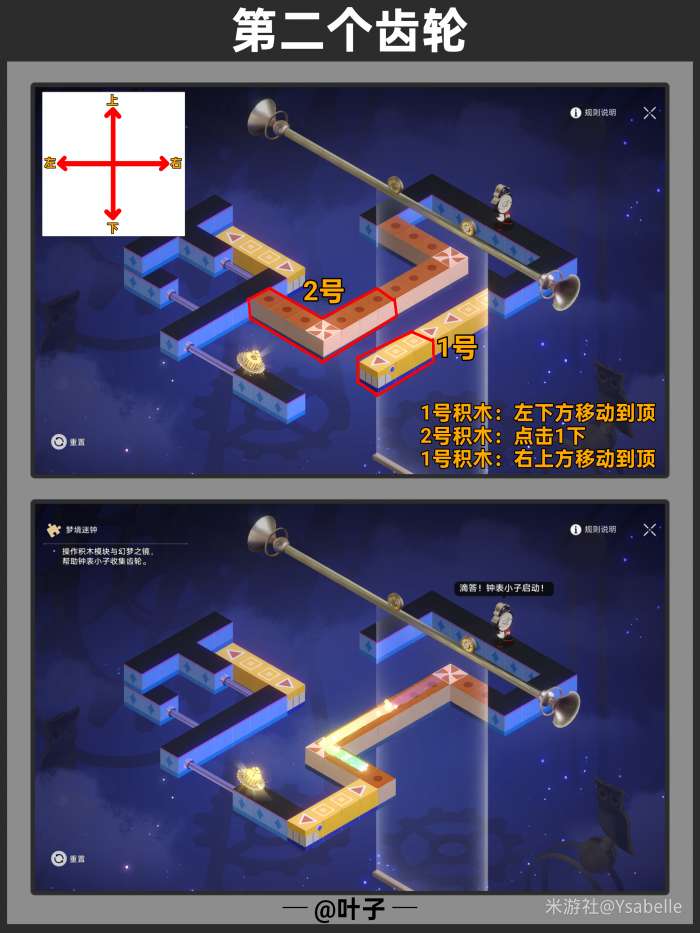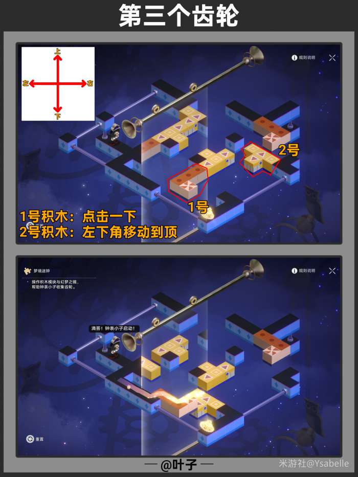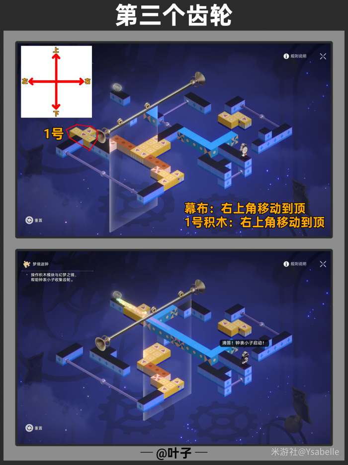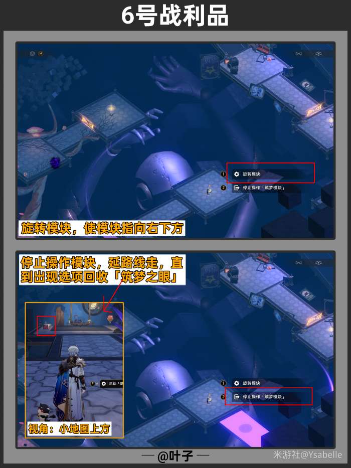 点击3次「旋转模块」,使模块指向右上方,随后停止操作沿路走【回收筑梦之眼】