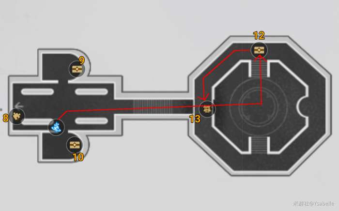 第二块区域,12到13号战利品路线: