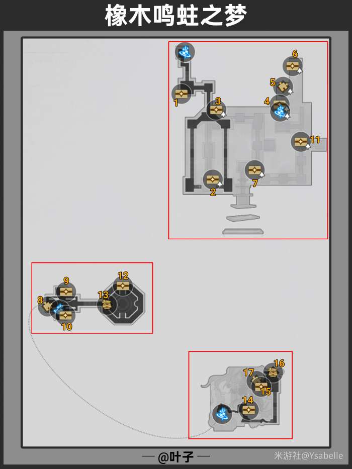崩坏星穹铁道橡木鸣蛀之梦怎么收集,橡木鸣蛀之梦地图战利品全收集,奖励合计:160星琼+780金表钞,包含:①普通战利品(5星琼+30金表钞)*12、②王下一桶(20星琼+120金表钞)*2、③梦境米迷钟(20星琼+60金表钞)*3。