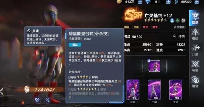 从阵容的团队协作角度来说,亡灵基纳的作用就是作为古阿帝国战术轴心的绝对补全。基纳遇到跨服副本的强敌时,可以利用它特有的亡灵科技羁绊和亡灵摩尔德和亡灵裘达组成闭环,给全队增加暴击率和攻击力加成。这种重视阵营纯度和爆发节奏的设计,使玩家们在达到个人强度的同时,还能准确使用暗影共鸣带来的暴击伤害叠加层数。