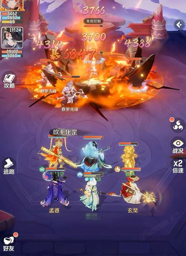 除了一技能飞沙走石是单体攻击外,天宫的其它四个技能都有着很强力的输出能力,并且前四个技能还能在释放时为自己叠加仙印层数,让自己在释放五技能天诛地灭时能打出更高的伤害。因此,天宫的输出方式其实很明确,那就是先用前四个技能完成仙印的叠加,待对手血量差不多能被秒时,用天诛地灭来完成清场。