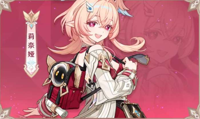 首先大家最关心的自然是全新的角色,本次的新角色是莉奈亚,红色瞳仁,粉色头发,甚至头上还有两个可爱的小翅膀,又是一名全新的萌妹,背上的包里似乎还有个“小伙伴”,是全新岩元素的弓箭辅助角色。