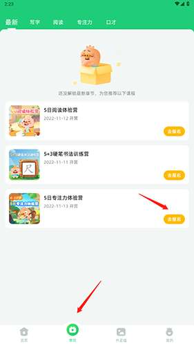 1、打开软件,点击底端的“学习”选项,然后点击“去报名”选项。