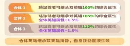 每提升一级会给珞珈尊者继承双英雄综合属性的提升(每级提升5%),以及全体英雄属性的提升。