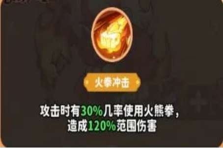 攻击时有30%几率使用火熊拳,造成120%范围伤害