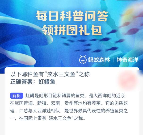 以上就是以下哪种鱼有“淡水三文鱼”之称?神奇海洋今天答案最新2025年10月17日分享,更多相关攻略内容,请点击关注pk游戏网更新!