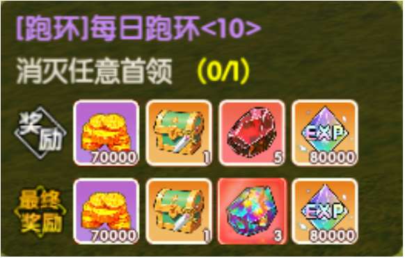 每日必领奖励:跑环 2 组 + 悬赏 10 次 + 试炼之塔 3 次