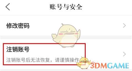 3、在账号与安全页面中点击注销账号按钮;