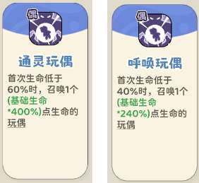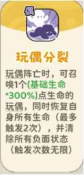 ①玩偶领袖。玩偶承伤流核心技能,增加玩偶生命,另一种玩偶辅助输出流可以不点。
