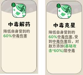 ②中毒解药,流派升级到18级后升级为中毒可行。克制中毒流派技能,在pvp上使用效果很明显。