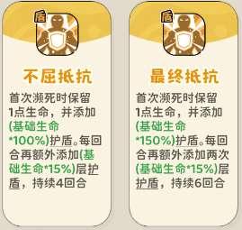 ①不屈抵抗,流派30级后升级为最终抵抗。核心技能,救命技能,但数值不高。