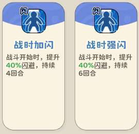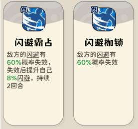 ①战时加闪,流派8级后升级为战时强闪。核心技能,战斗前期提供高额闪避。