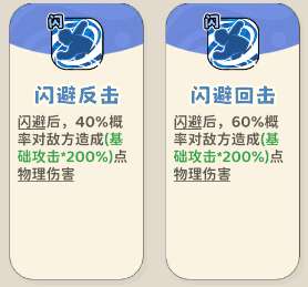 ①闪避反弹,流派30级后升级为闪避回弹。核心输出技能。概率较低,但打伤害全靠他。