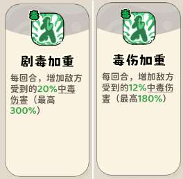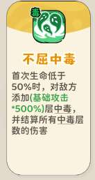 ①不屈中毒。核心技能,中毒流的弱点就是每回合只结算一次伤害,此技能直接多结算一次提升很明显。