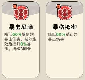 ②暴击抵御,流派16级后升级为暴击屏障。减免暴击伤害技能,非常克制暴击伤害。例如默认暴伤为200%,若不暴击伤害为100,暴击伤害被抵御变为200*0.4=80,只有将暴伤堆到250%以上才会比不暴击伤害高。